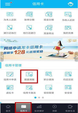 ①在信用卡菜单中选择“额度调整”,选择需要申请调额的卡片,勾选“同意授权”后,选择“临时额度调整;