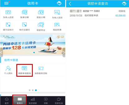 ③选择“调额申请查询”,实时查询进度,快速得知审批结果。
