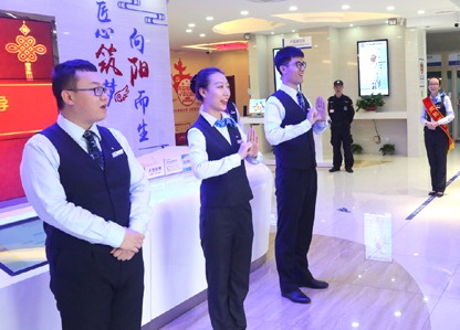 被中国银行业协会授予“中国星级银行网点”的宁夏区银川东城支行,利用晨会开展全员参与情景服务表演,不断提升员工自身由内而外的服务质量与水平。■ 刘联华/摄