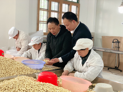建行工作人员来到三明市建宁县莲子加工企业了解善融扶贫情况。