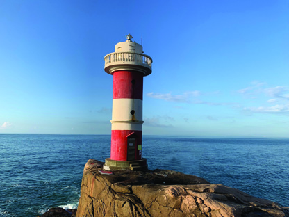 岛上的时光总是静谧而又愉悦的。下午,我们一行人沿着依山小路慢慢走着,山下风光尽收眼底,时不时有两艘快艇在海面上开过,留下一片涟漪。每当这个时候,我们总会异口同声地感慨大自然的神奇,然后麻利地按下快门,记录下瞬间的美好。每每在这个时候留下的风景照,总是特别的有动感,让人心生欢喜。再一直往海边尽头走去,会遇上一座红色的灯塔,对于我们这些拍照达人来说最是合乎心意。脚下的黄色石头,眼前的红色灯塔,背后的湛蓝大海,无论怎么拍,都觉得好看。