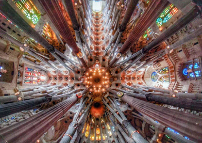 圣家祖大教堂,简称“圣家堂”,位于西班牙加泰罗尼亚巴塞罗那,自1882年开始,足足建了136个年头,竣工的时间据说将是2026年,或者更长。这是世界上唯一一座还未完工就被列为世界文化遗产的建筑物。教堂最初被命名为贫民教堂,曾一度改成“新教堂”,是一座宏伟的天主教教堂。螺旋、锥形、双曲线、抛物线等各种变化组合,让这座神圣建筑充满韵律和动感。而不安分的色彩由清淡变为温和,又由温和变为浓烈,大自然中鲜见的原色热烈而饱满地绽放在这里固有的庄严和肃穆之中。