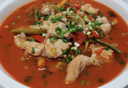 在美怡阿姨的提议下,我们张罗起一份特殊的见面交换礼——她给我做蚵仔煎,我为她做酸汤鱼。主意倒是有了,问题同时也来了。酸汤鱼的原汁底料,该去台北哪个角落寻找呢?家乡的酸汤通常需用米汤自然发酵,加以秘制糟辣椒和野生西红柿,在泡菜坛中加盖酝酿15天才算入味,这还只是完成了第一道汤底准备工序。在对食材的选择上,看似粗放实则精细,通常选择草鱼、鲶鱼、鲤鱼或者黄辣丁,肉质鲜嫩,口感细腻。由于条件所限,我们决定折衷购买加工好的酸汤底料做一把尝试,顺便验证漂洋过海之后它还够不够正味儿。锁定食材选取范围后,我们立马出门去菜场和超市采购,所幸在几番辗转之后,终于在遍地海鲜产品外寻着了一包酸汤底料。回到家迫不及待起锅下油,姜蒜先入锅翻炒,倒入酸汤底料,加水慢炖。
