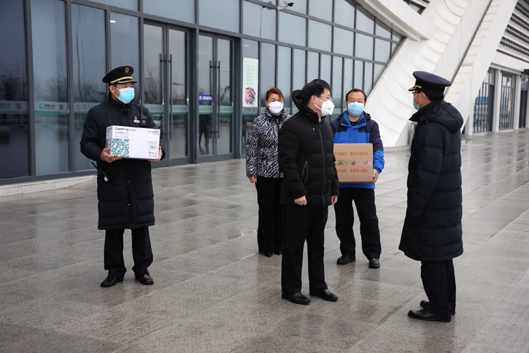 河北省衡水分行到当地高铁站、火车站等交通部门捐献防疫物资,了解返工潮高峰金融需求。■ 赵文果/摄