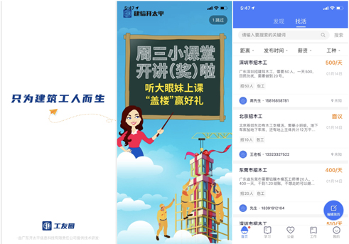 专业从事木工活的林师傅原本在东莞打工,返乡后因疫情影响而在家待业。2月12日,他在“民工惠”APP上了解到了全国各地的复工情况。之后,他又在APP的“找活”栏目中,搜索到了距离最近的招工项目,“招木工师傅20人,做展开支模,包工25元/方……”