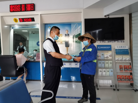 临近午时,一名女性清洁工出现在福建省宁德车站支行的“劳动者港湾”门口,她脸色苍白,满头大汗。大堂经理马舒夏看到后马上拿了非接触式体温计帮其测量体温,经过测温和观察,客户并没有发烧发热症状,遂让她在“劳动者港湾”的座椅上休息。通过进一步交谈得知,大婶不仅赶早出来打扫卫生,早饭也没吃,连水也忘了带,清洁工作一直忙到十二点还未结束。马舒夏得知后马上倒了一杯热水递给她,网点负责人陈昌贺泡了一碗方便面给她填饱肚子。用餐完毕后,细心的陈昌贺发现这位大婶的口罩弄脏了,从“劳动者港湾”的便民箱里拿了一个口罩递给她,提醒她工作的时候别忘了自己的健康防护。