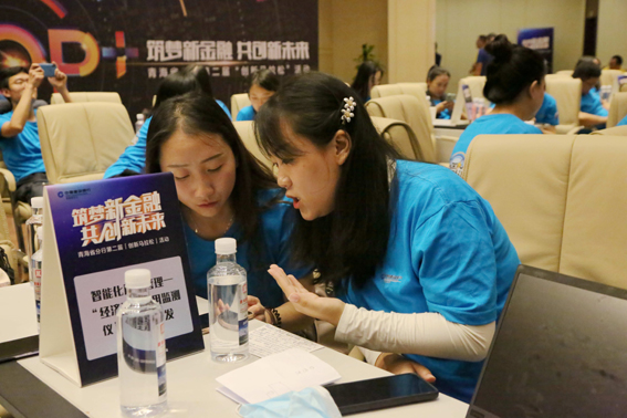 青海省分行成功举办第二届“创新马拉松”活动。图为路演决赛现场,入围决赛的选手认真进行赛前准备。■ 段荣国/摄