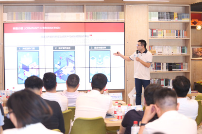 图为在建行大学愚公学院创课堂现场,愚公学院特聘专家刘翌(加推科技联合创始人兼首席战略官)与小微企业学员在课后进行互动交流。