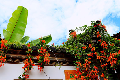 鲜花炒蛋,作为当地的特色菜之一,广受欢迎。石榴花、玫瑰花、茉莉花皆可搭配,咬上一口,蛋的爽滑鲜嫩,花的芳香四溢,在口腔里激荡,竟是如此和谐;色彩搭配上自是更不用说,金黄中点缀着或红或白,还有零星的绿穿插其间,赏心悦目,让人不禁食欲大增。