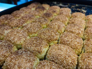 黄桥烧饼只有巴掌大小,厚薄不盈半寸,表面撒了一层厚厚的焦黄芝麻。或是圆圆的,微甜,或是扁扁的,微咸。个个黄灿灿,如同工艺品般,极为精致。主馅是肉松、火腿、虾米、鸡丁、香肠等,外加猪油、香葱调和。外黄里软,不焦不糊,不油不腻,咬一口,香气四溢,沁人心脾,葱油渗进嘴角,满口生津。