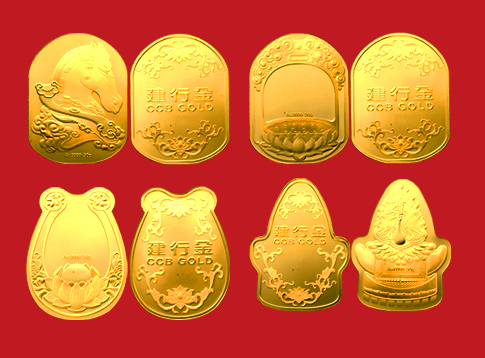 马年祝福,正面分别为马头、马鞍、马镫、马蹄,寓意吉祥,装饰莲花纹、如意、吉祥卷云纹、如意宝珠等吉祥纹饰。整套包括一马当先、安居乐业、一步登天以及平步青云。